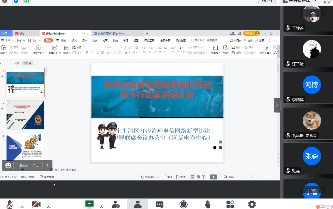 为增强员工法治意识,提高员工防电信诈骗能力,生命学院于9月29日19:30组织开展了防范电信诈骗网络安全教育活动,本次活动邀请七里河治理电诈联系会议办公室朱毅斌警官以线上讲座的形式开展,2022级全体新生参加了本次活动。