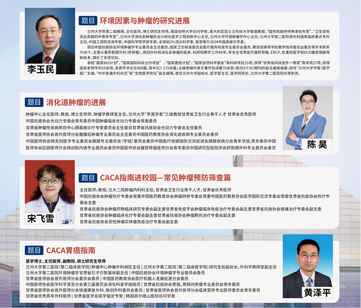 报告会上,李玉民教授以《环境因素与肿瘤的研究进展》为主题,深入解析空气污染、化学物质暴露等环境因子与肿瘤发生的内在关联,强调“预防优先”的健康理念;陈昊教授聚焦消化道肿瘤,结合临床案例分享早期筛查与诊疗新技术,呼吁关注饮食健康;宋飞雪教授围绕《CACA指南进校园-常见肿瘤预防筛查篇》,系统解读肺癌、乳腺癌等高发肿瘤的筛查策略;黄泽平教授则通过《CACA胃癌指南》详解,阐释胃癌规范化诊疗路径,倡导科学防癌、精准就医。