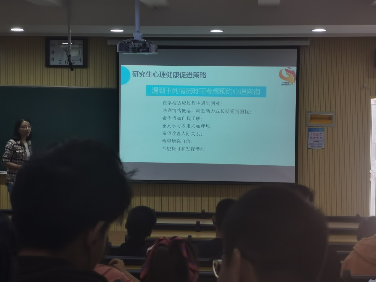 崔老师结合“网抑云音乐”“六格漫画”“扶不扶”等网络热词,通过接地气的案例分析,带领同学们进行倾听与共情练习。通过分析生活中常见的沟通误区、讨论倾听错误、练习倾听技巧,学习如何做到反应性倾听。之后崔老师向同学们普及了心理健康的标准,以及如何正确理解心理健康,期间她以“研究生当前的任务是什么?完成任务的前提是什么?入学以后遇到了那些烦恼与困难?”等问题与同学们互动的同时,引导同学们应学会释放压力,积极适应环境。为了让同学们更好的正视心理健康,她又讲述了“内心矛盾的猫”等动物实验以及《黄帝内经》中“忧伤肺,思伤脾,怒伤肝。恐伤肾,喜伤心”的例子。最后,崔老师向同学们提供了“了解与接纳自我”“修正认知观念”以及“面对压力时主动解决”等研究生心理健康促进策略并预留了公司心理辅导站的联系咨询方式。
