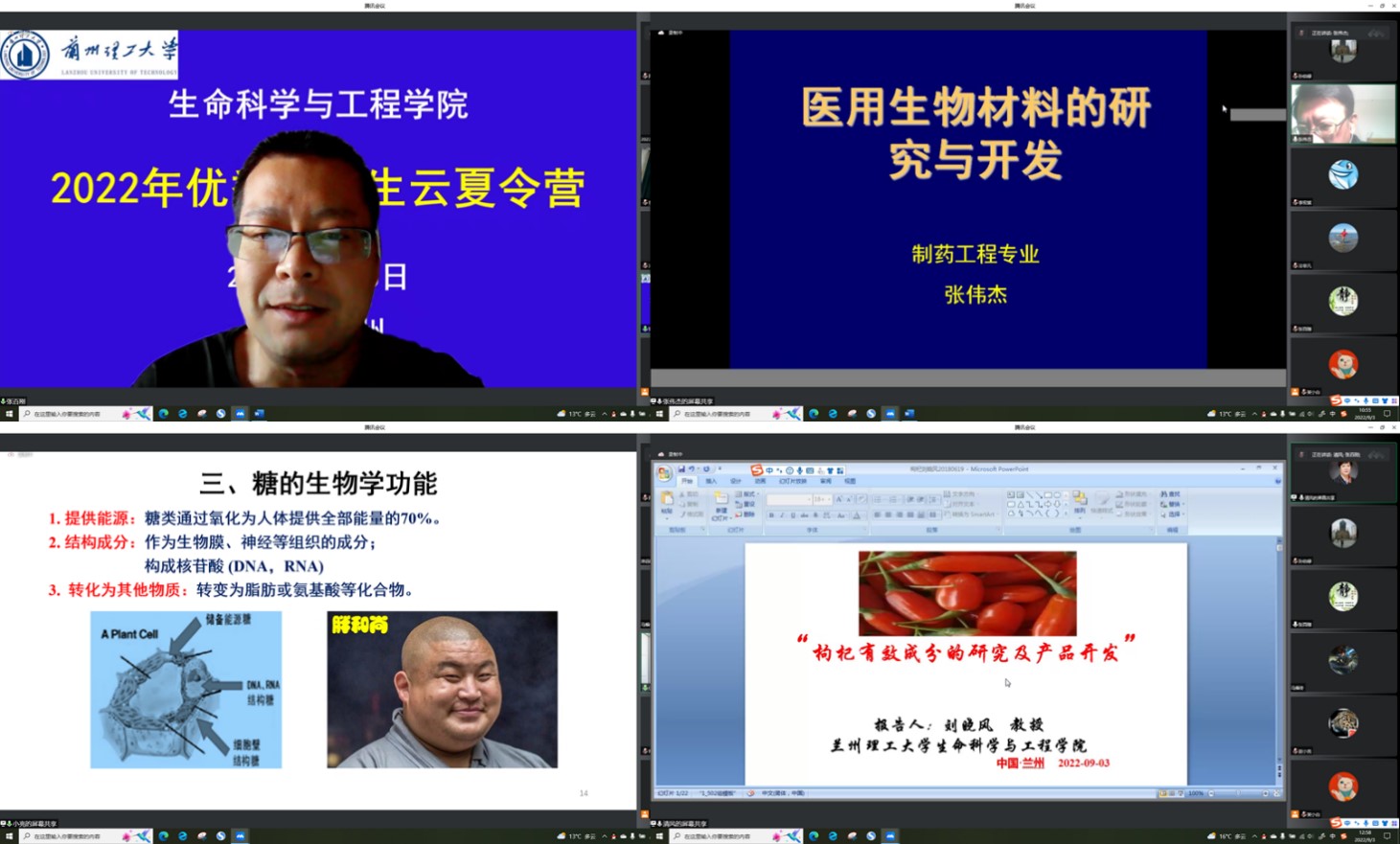 伍国强经理代表3377体育全体师生欢迎参加夏令营的各位同学,并从公司历史、团队队伍、学科方向、科学研究、人才培养以及招生录取等方面介绍了3377体育的基本情况,同时希望同学们珍惜云端相聚的机会,通过师生线上交流互动,架起友谊之桥,将来相见在兰理工、奋斗在兰理工。