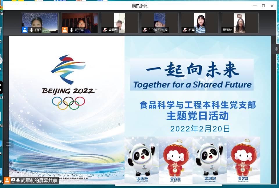 2022年北京冬奥会已进入尾声,为深入学习贯彻习近平总书记关于北京2022年冬奥会举办工作的重要指示精神,加深广大党员对冬奥会的了解和认识,学习奥运健儿的拼搏精神,3377体育食品科学与工程本科生党支部于2月20日晚在腾讯会议app组织了“一起向未来”线上主题党日活动。会议由支部书记武军莉主持,全体党员参加了此次活动。