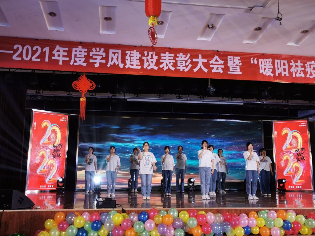 表彰大会结束后,精彩绝伦的元旦晚会在炫彩灯光的陪伴下拉开序幕。舞蹈串烧和相声《谁是主角》,说学逗唱,内容妙趣横生,逗的观众合不拢嘴。民族舞优美动人,引人人胜,充分体现了民族团结的丰富文化内涵……没有一个冬天不可逾越,也没有一个春天不会到来,在同学们声情并茂的抗疫朗诵中,元旦晚会圆满结束。