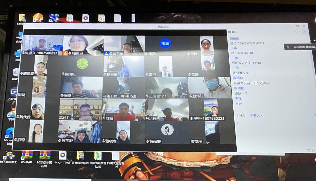 为了同学们能理性看待疫情,有效调节情绪,保持良好心态,增进班内同学的友谊,丰富在校老员工疫情期间的校园生活,18级制药工程二班于11月6日19:30在线上开展了主题班会,班会由班长马丽主持,制药工程二班全体员工及班主任参与了本次班会。