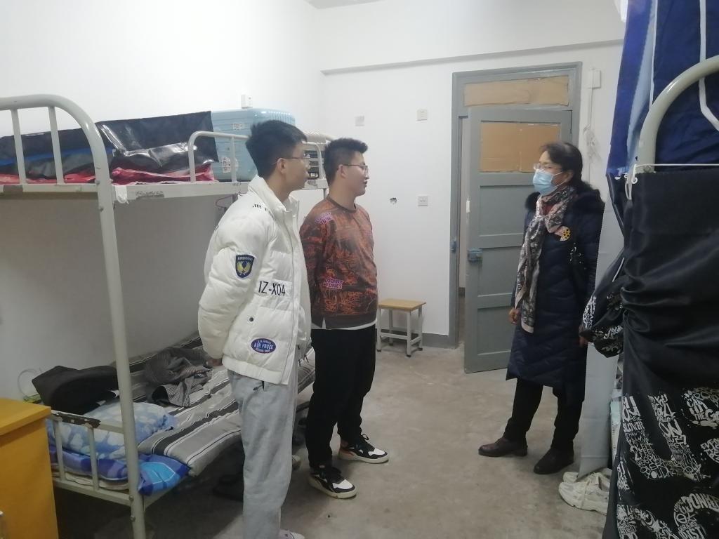 武书记对认真学习,卫生良好的宿舍表示肯定,鼓励他们继续保持,在疫情期间勤奋努力,充实自己。
