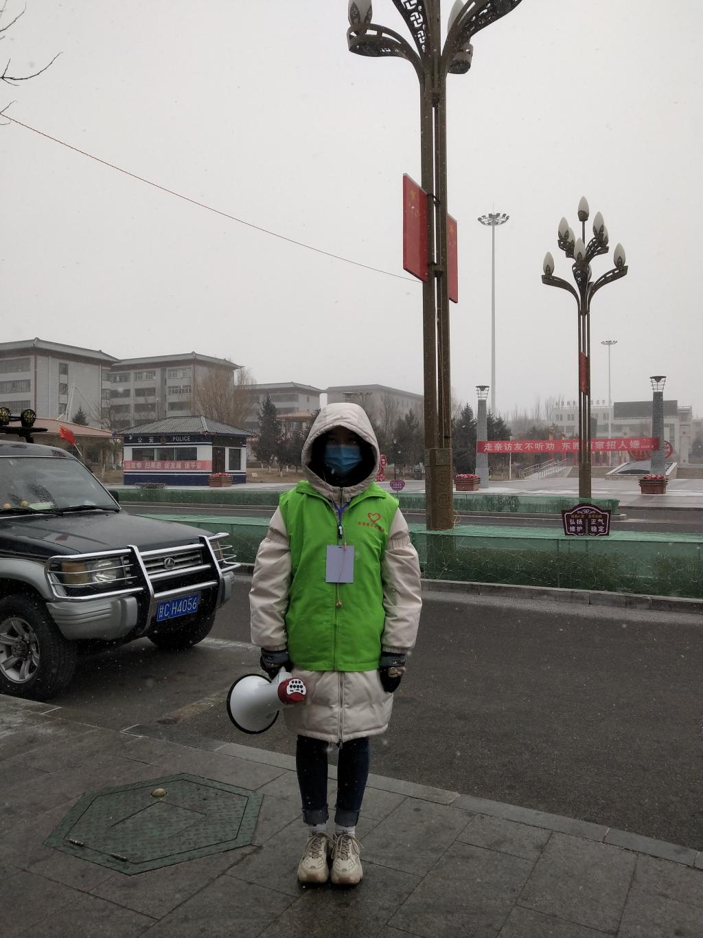 在疫情防控的关键时期,根据中央部署,永昌县积极采取了一系列有效的防控措施,共青团永昌县委员会向社会发出了征集防疫志愿者的通知,作为一名老员工党员,她每天关注疫情发展,深刻认识到疫情的严重性。她一面听从安排居家隔离,一面想为国家、社会做点什么。当看到招募令后她及时向公司党委、党支部书记汇报想法,经批准后她义无反顾的加入了疫情防控青年志愿服务队这个大家庭当中。在做志愿者工作中她严格执行省、市、县委防疫工作要求,团队分工明确,有序开展疫情防控青年志愿服务活动,坚守在自己的防疫岗位上,全力投入抗疫战斗。由于工作突出,现在已成为永昌西街志愿者服务队的小组长。每天工作六个小时,主要工作有:一、带领组员及时转发官方媒体发布的消息,主动传播权威信息和科学知识,增强全县人民的自我防护意识,消除社会恐慌心理。带动身边人少一些质疑,多一些理解,保持理智和冷静。二、带领组员积极抵制不实信息,不随意传播非官方渠道发布的疫情信息,不信谣、不造谣、不传谣。发现不良信息及时上报。三、带领组员劝导行人、聚集人群减少社交应酬,少去人员密集场所,做好自我防护。前两条网上完成的工作相对好做些,最后一项工作需要在广场、社区、超市等人流量大的地方进行新型冠状病毒防控宣传,对聚集的人群进行疏散、劝导和宣传。对居民进行必要的科普讲解,让群众认识到防疫的重要性和紧迫性,引导群众及时正确防疫。遇到极其寒冷的天气,大风席卷着沙尘,文燕和她的组员依然无畏严寒,奔波在县城的大街小巷,她的耳朵已被冻出血结痂,脸颊冻的通红,嗓子已经沙哑,脚上磨出血泡……但她依然坚守在岗位上,无惧身体的疼痛,成为街道上最美的风景线。