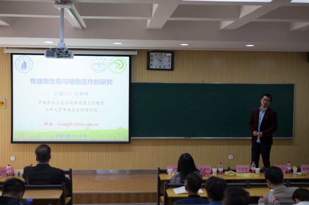 研讨会上,静宜大学食品与营养系系主任钟云琴教授首先作了题为“Bio-Activities of Bacillus subtilis Fermented Red Beans”的报告;随后由中科院兰州化物所师彦平研究员和公司伍国强副教授分别作了糖蛋白印迹萃取与分析和Physiological and molecular mechanisms of sugar beet response to drought and saltstress的学术报告。公司优秀员工、兰州大学草地农业科技公司青年研究员王剑锋博士、石河子大学史学伟教授分别作了关于新疆葡萄产区微生物多样性及其对葡萄酒品质的影响、有益微生物与植物互作的研究报告。最后,优秀员工,卓和药业集团有限公司市场总监谭斌做了题为“三终端市场药品营销的机遇、挑战及社会意义”的报告。研讨会讨论环节,与会师生针对关心的学术问题与报告专家进行了热烈交流,会议气氛浓郁热烈。会议结束时刻,公司副经理李志忠教授做了研讨会总结,大会报告之丰富、讨论之热烈、思维碰撞之活跃,为与会师生提供了一场学术盛宴。