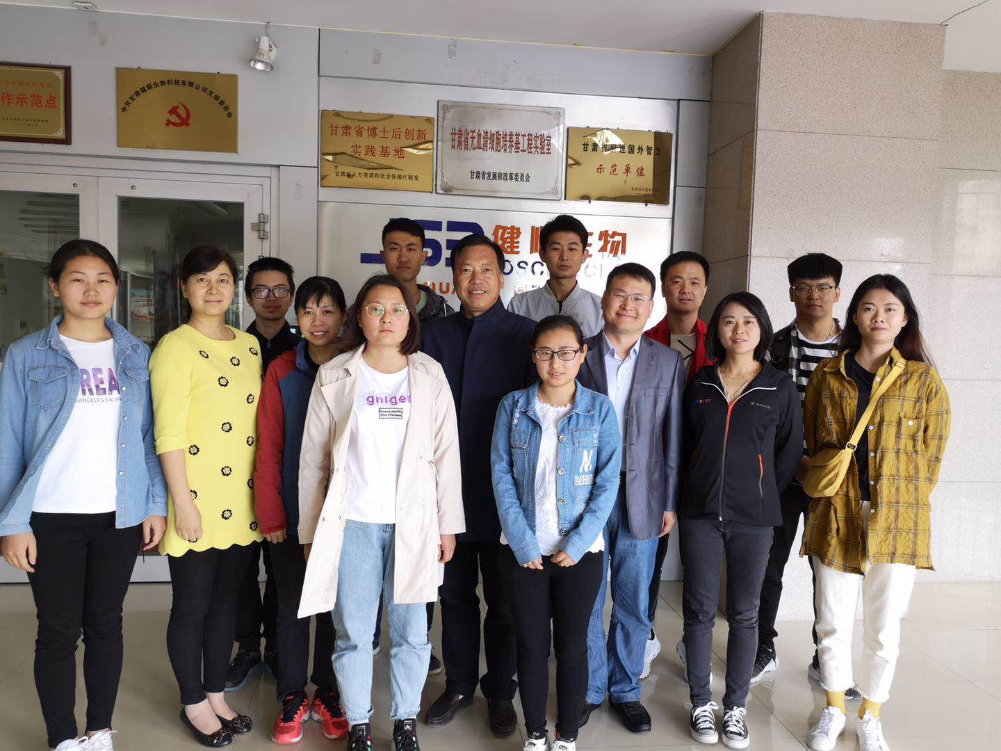 座谈会结束后,李经理一行参观了甘肃健顺生物科技有限公司文化走廊,并与实习的同学及指导老师合影留念。