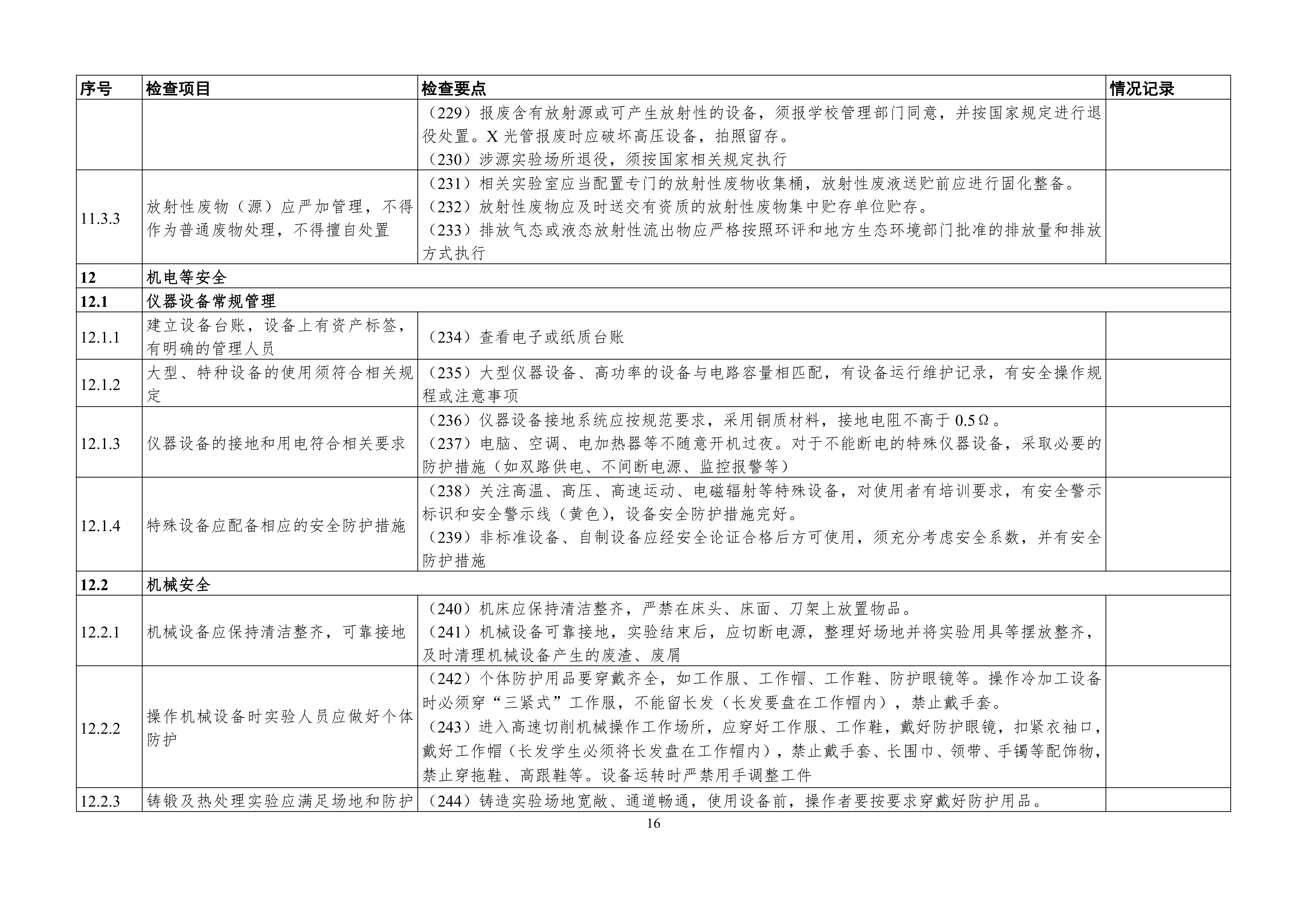 高等公司实验室安全检查项目表(2025 年)